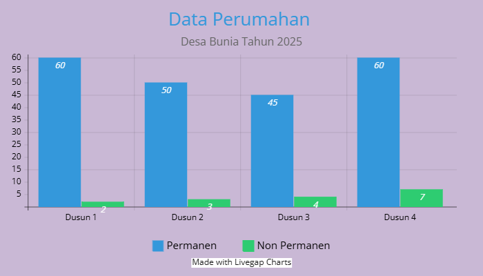 Dengan perbandingan tersebut, terlihat bahwa mayoritas rumah di setiap dusun adalah rumah permanen, namun juga terdapat sejumlah rumah non permanen yang tersebar di seluruh dusun.